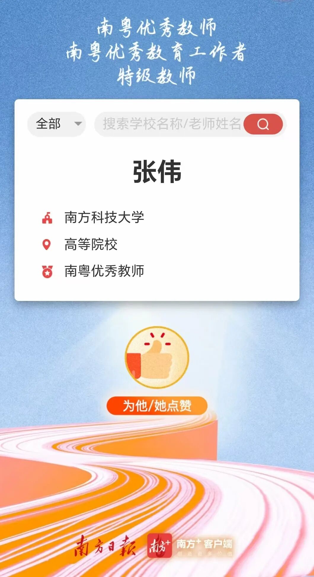 2025年9月11日,广东省隆重召开2025年表彰优秀教师(教育工作者)大会, 南方科技大学地球与空间科学系(简称“地空系”)张伟教授凭借教学及人才培养领域的突出贡献获评“南粤优秀教师”。南粤优秀教师是广东省为在全社会弘扬尊师重教的良好风尚,激励广大教师和教育工作者献身教育事业,吸引优秀人才投身教育事业,为加快建设教育强省、推动广东教育高质量发展作出更大贡献而设立的教师荣誉称号。这一荣誉不仅是对张伟教授个人教坛耕耘的表彰,也是对地空系重视教学、在师资队伍与育人体系建设上取得卓越成效的高度肯定。