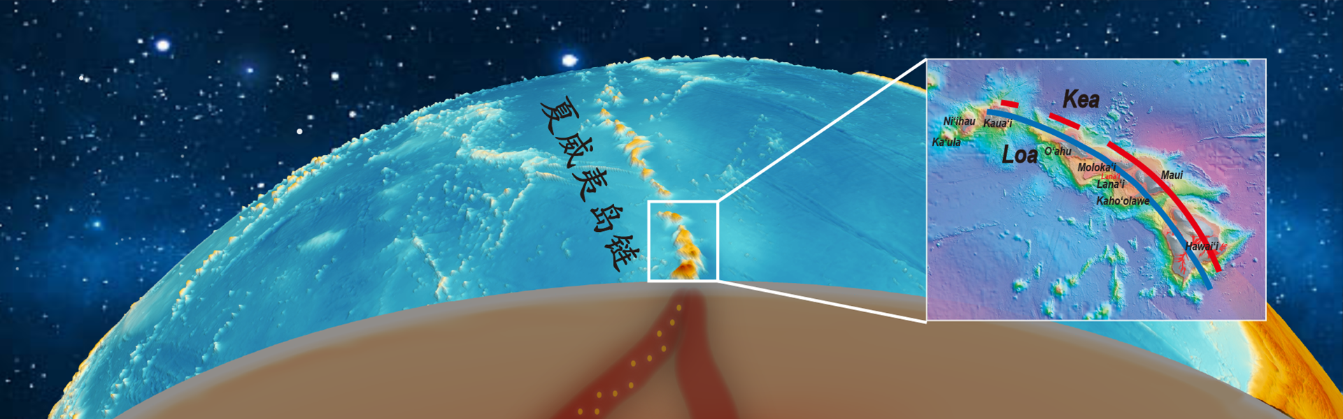 近日,南方科技大学地球与空间科学系副教授胡佳顺课题组在Science Advances发表题为“Bilateral Loa-Kea trends of the Hawaiian Islands caused by the bottom-up splitting of plume conduit”的研究论文。