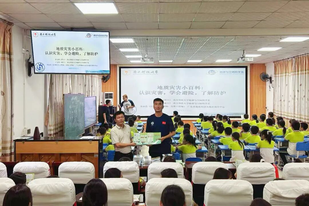 9月17日,南方科技大学地球与空间科学系第一学生党支部联合广东省地质局韶关地质调查中心,走进平远实验小学开展地质灾害小知识培训活动,为240多名师生带来了一堂生动实用的安全课。